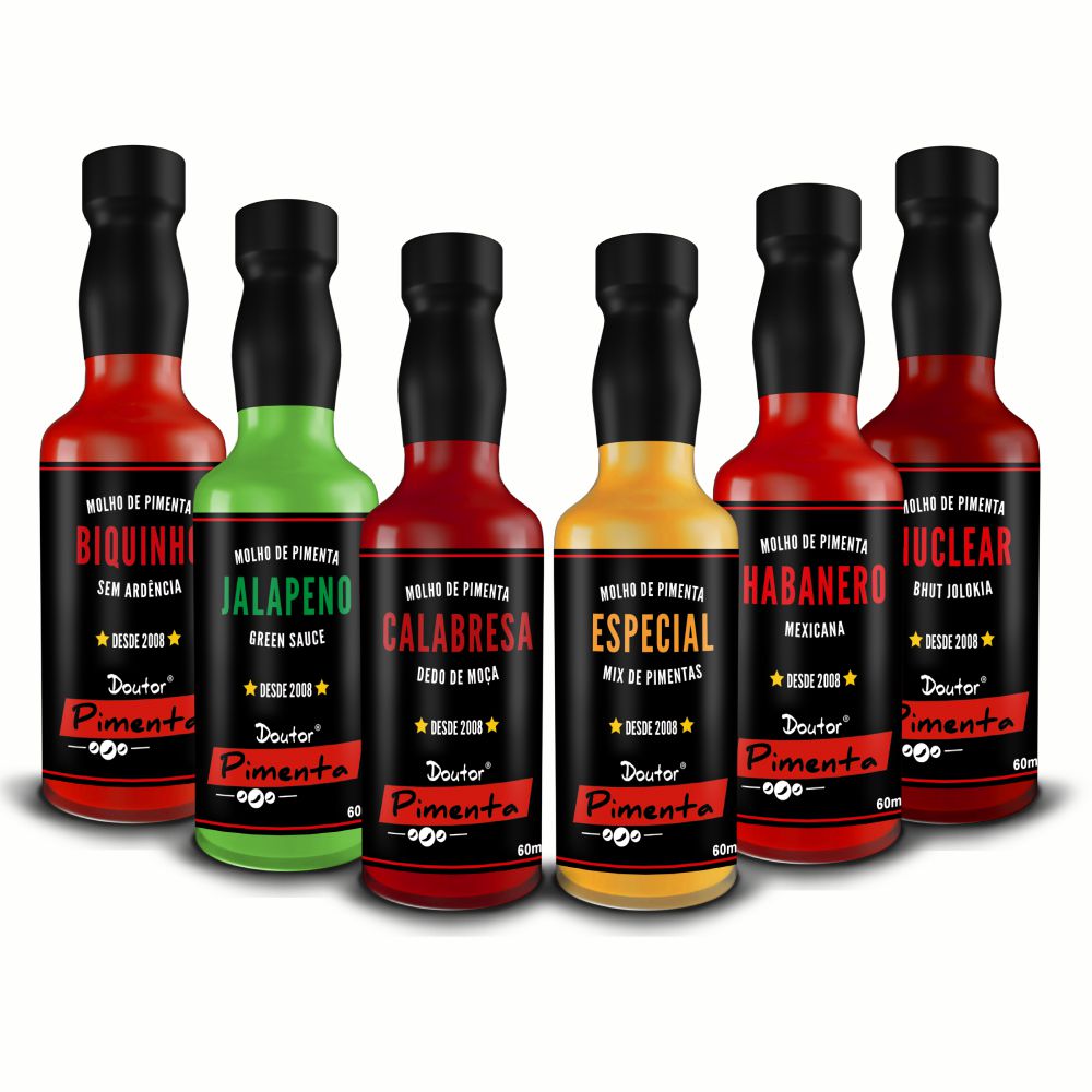 Kit com 6 Molhos de Pimentas Artesanais - 60ml Cada